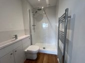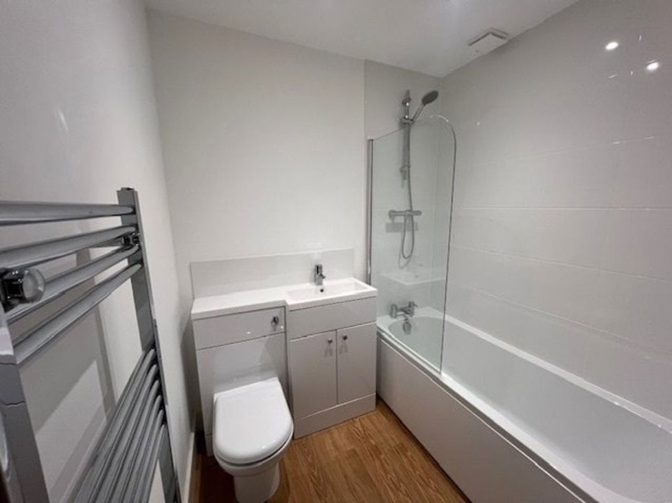 * Family bathroom with shower over bath